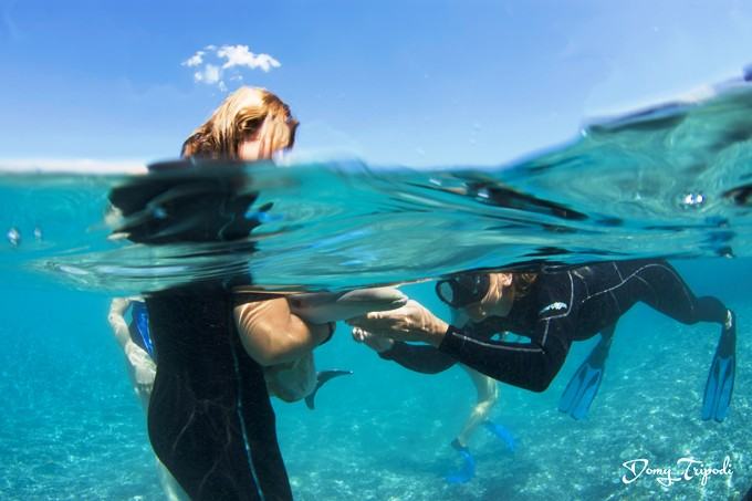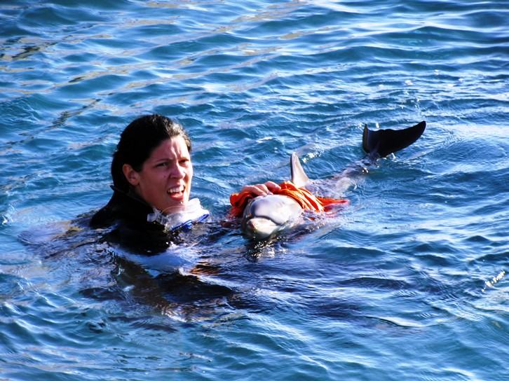 I biologi hanno tratto in salvo il piccolo e lo hanno trasportato supportandolo in acqua per alcuni chilometri.