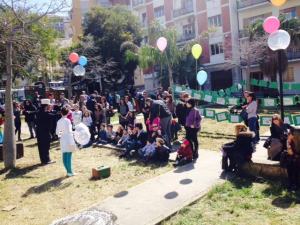 È domenica finalmente! Volano palloncini, i gerani sorridono al sole dell’equinozio mentre i bimbi calpestano per la prima volta il polmone verde del centro città.