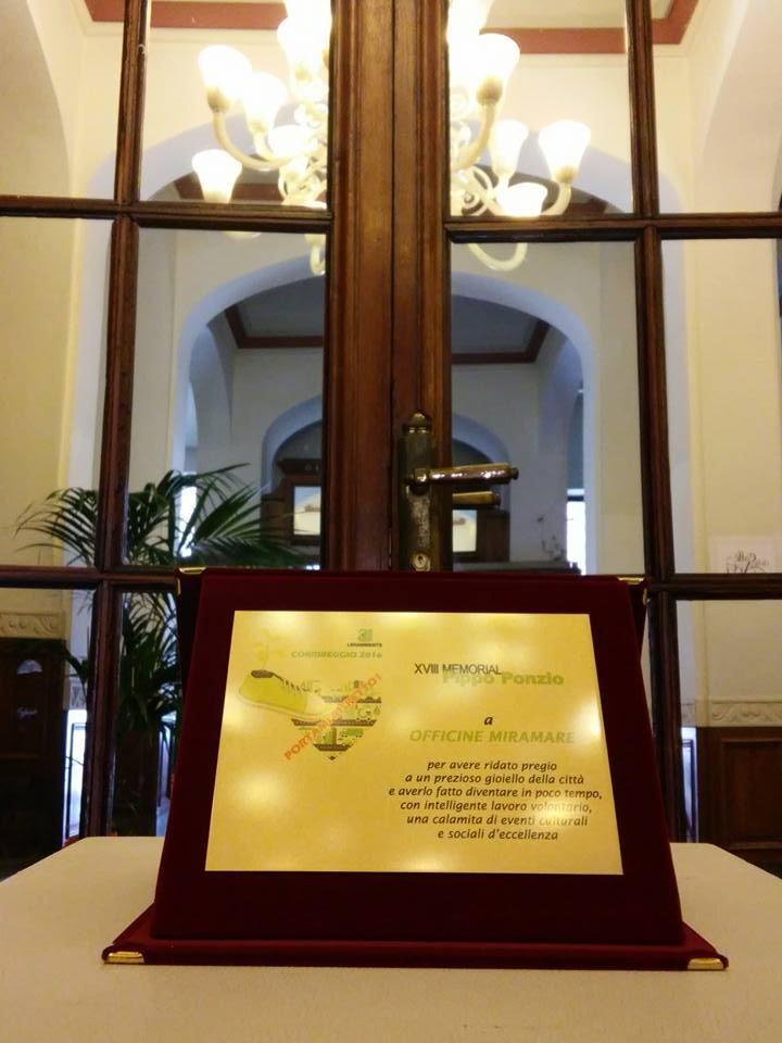 Officine Miramare, riceve da Legambiente il premio della 34.a edizione di CorriReggio con una motivazione, ”per avere ridato pregio a un prezioso gioiello della città e averlo fatto diventare in poco tempo, con intelligente lavoro volontario, una calamita di eventi culturali e sociali d’eccellenza”, che la rende orgogliosa e che chiede all’Associazione di proseguire nel suo operato.