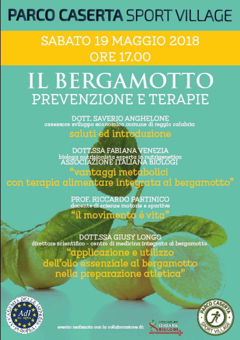 Il Parco Caserta Sport Village, al cui interno sono stati piantati 33 alberi di bergamotto, con l’Accademia delle imprese europee, che della filiera del bergamotto ha fatto uno dei suoi fiori all’occhiello ed il patrocinio dell’Associazione italiana biologi, invita tutti a partecipare al convegno.