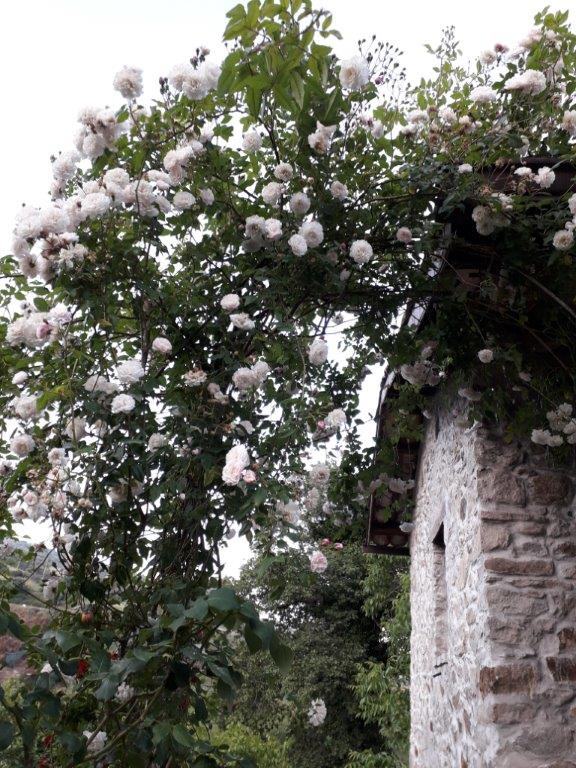 La seconda parte del la Festa, come da programma, è stata animata dalla ricca lezione dell’esperta, “giardiniera irregolare”, Lidia Zitara che con una mirabolante sequenza di immagini ha condotto i partecipanti a orientarsi nel magnifico e complesso mondo delle rose antiche e moderne prima di guidarli nel bellissimo roseto della Casa per il riconoscimento dei rosai qui coltivati. La passione per le rose e la loro coltivazione sono il presupposto che ha motivato l’artista Marò D’Agostino, architetto paesaggista e ideatrice della Casa delle Erbe, a progettare “La Festa delle Rose”, offrendo a chi ama i giardini e le rose un’occasione straordinaria per incontrarsi, confrontarsi o apprendere. Per l’occasione, Marò ha allestito nei locali interni della casa anche una suggestiva mostra fotografica dal titolo “Intime rose”, presentando una parte del suo più ampio lavoro selezionato qualche anno fa dal Photo festival di Milano ed esposto alla Galleria Exfabbricadellebambole.