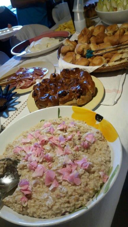 La psiche, la mente ed il corpo hanno bisogno sempre di stimoli e di bellezza. Vista, olfatto, tatto, udito e gusto quando sono ben attivati alimentano il benessere e l’equilibrio. Attivare i sensi è un tutt’uno con la pratica del mondo naturale. Poiché “siamo quello che mangiamo” la scelta del cibo assume significati vitali. E proprio la degustazione di ricercatissime leccornie tutte preparate ad arte con le rose è stato uno dei momenti clou della festa. Un menu raffinato e ricchissimo di cui ricordiamo le tartine con la marmellata di rose e scaglie di formaggio locale, un profumatissimo risotto alle rose muscose, le omelettes di couscous e petali, bellissime torte rustiche come bouquet di rose, fino al dessert di albicocca con crema di rosa bourbon, guarnita da petali brinati e tantissime altre godurie culinarie e bevande aromatizzate preparate da cuoche provette.