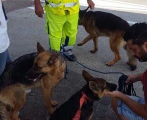La squadra Anas ha salvato una famiglia di tre cani pastori tedeschi che vagavano ai bordi della barriera spartitraffico. Ecco le foto