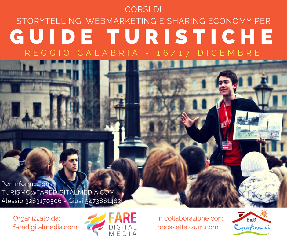 Si terrà a Reggio Calabria il 16 e 17 dicembre, presso il B&B CasettAzzurri (Via Matteo Preti, 36), il primo corso in assoluto dedicato alla innovazione e digitalizzazione delle professioni di guida turistica ed escursionistica, con il fine ultimo di promuovere l’interesse dei visitatori per il territorio attraverso i percorsi guidati.