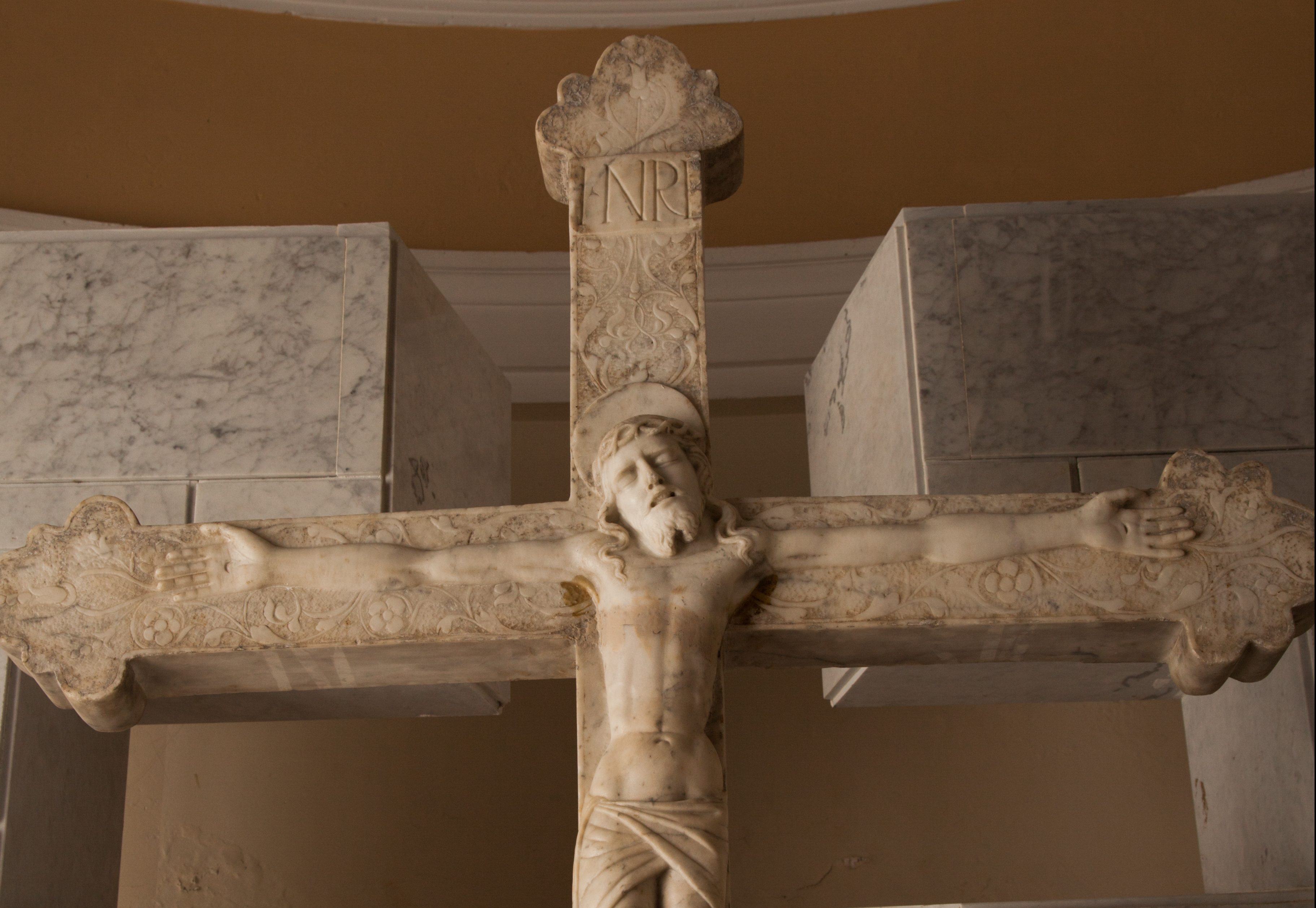 Dal punto di vista stilistico il manufatto lapideo risente dell’influenza della nuova religiosità controriformista che si andava diffondendo in Calabria. Si veda l’espressione di pathos impressa al volto del Cristo morto, coronato di spine e leggermente inclinato sulla spalla destra, con appena accennate le sporgenze degli zigomi, o la risoluzione dello sguardo, immortalato mentre esala l’ultimo respiro. Di contro la struttura del corpo del Cristo è rigida e bloccata, con evidenti sproporzioni anatomiche, palesi tanto nella sagoma del capo, incassato nelle spalle, quanto nel profilo della braccia, allungate fino all’inverosimile. Semplicistica anche la risoluzione del perizoma e dei rilievi scolpiti nel retro della croce, eseguiti rispettando pedissequamente i canoni iconografici convenzionali, tanto da chiedersi se certe sgrammaticature formali, siano frutto di una specifica richiesta della committenza a rifarsi ad un modello più antico, probabilmente dipinto o in metallo prezioso. Come si deduce dalla visita pastorale dell’Arcivescovo di Reggio Calabria, Annibale d’Afflitto, del 1595, sappiamo che l’opera fu voluta dall’abate Giovanni Luigi Verduci, un prete italo greco, originario di Motta di San Lorenzo, discendente di quel Jacopo Verduci che nel 1504 aveva commissionato, sempre per la cappella di famiglia bagaladese, il gruppo scultoreo dell’Annunciazione attribuito ad Antonello Gagini.