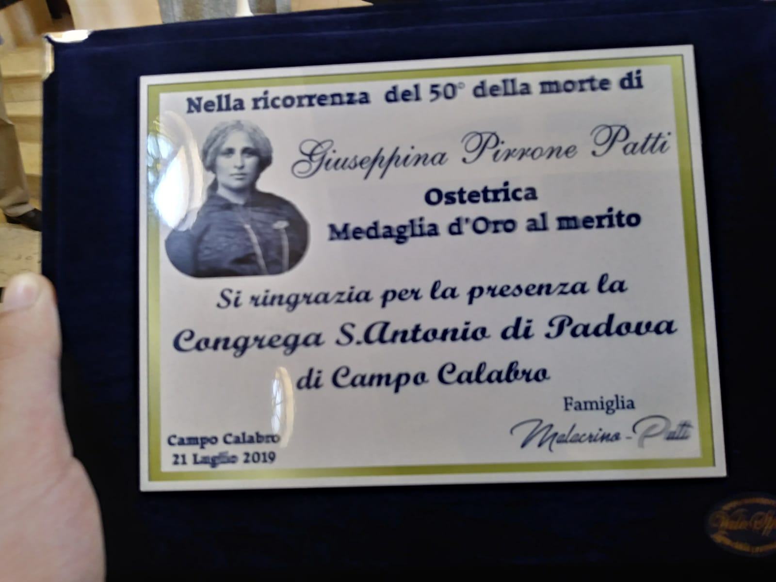 Nel 50° anniversario della sua dipartita, Campo Calabro ed i suoi cittadini ricordano l'ostetrica Giuseppina Pirrone Patti