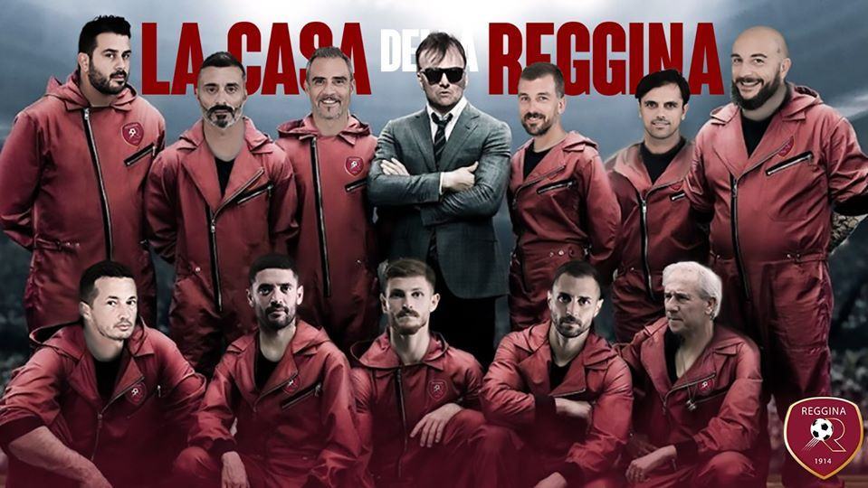 La solita straordinaria fantasia miscelata a bravura dell’avanguardistico ufficio stampa della Reggina. Sulla pagina facebook ufficiale della società, l’immagine di alcuni protagonisti della Reggina in tuta amaranto (quella dei protagonisti della Casa di Carta è rossa) e con il DS Taibi in mezzo a rappresentare il “professore”.