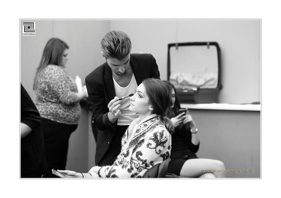 “Una volta che mi sono reso conto che il make up mi piaceva e mi dava soddisfazione, per come sono fatto caratterialmente…sono un tipo determinato…mi sono voluto specializzare. Ho avuto dei contatti a Reggio inizialmente, poi ho fatto qualche corso per testarmi ulteriormente, per vedere se questa cosa davvero la sentivo mia, per poi finire a Milano, dove ho frequentato l’Accademia internazionale di trucco BCM, dove ho fatto il corso qualificante, che non è solo un attestato, io volevo una vera e propria qualifica in mano. Così da giugno dell’anno scorso sono truccatore professionista!”