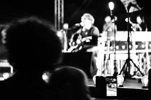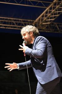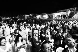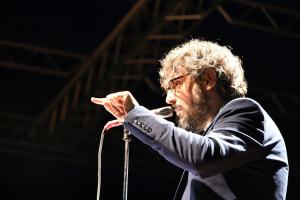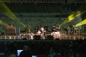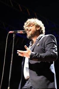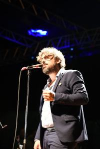 Accompagnato da una splendida banda, incanta gli spettatori giunti al Fortino di Ecolandia, ormai confermato luogo di eventi culturali, musicali ed artistici. Sembra quasi di presenziare ad un evento turistico di una grande capitale europea, e complice la serata fresca ed un cielo limpido, ascoltare le sue canzoni in un’area naturale archeologica ripristinata e riportata ad antichi splendori, fa estraniare la mente dai problemi quotidiani e dalla realtà del mezzogiorno che comunque viene narrata ironicamente dallo stesso cantante, scappato dalla sua città natale a 18 anni ma ancora legato.