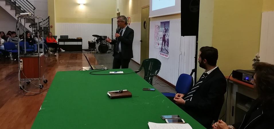 “ E’ impensabile che i giovani del Sud Italia, seduti come sono su un territorio ricco di tesori, debbano abbandonare il luogo natìo per inseguire la realtà del lavoro. Il Progetto che proponiamo, e che da oggi condividiamo, mira proprio a questa finalità: dialogare a stretto contatto con le Amministrazioni locali per creare qui quei posti di lavoro che i giovani vanno a cercare altrove. Dobbiamo anche pensare che la società moderna sta trasformandosi sempre più in una realtà digitalizzata; perciò, in un prossimo futuro magari si potrà svolgere da casa, con la connessione telematica, un lavoro che ancora oggi non esiste”. Il Prof. Monti, con l’aiuto di alcune slide ha spiegato l’intento del Progetto che sarà svolto dagli alunni delle Quarte classi, a cui è destinato come attività di Alternanza scuola-lavoro. Si tratta di un’attività nuova, di indagine sociologica, in cui proprio i giovani dovranno guardare al loro futuro con occhi nuovi, immaginando quale professione, che li renda autonomi, sia possibile nel prossimo 2030. “ Sarà proprio la nuova economia digitale che vi farà scegliere in quale città lavorare: forse, non sarà più necessario spostarvi dalla vostra camera e non sarete costretti ad abbandonare la terra che vi ha dato i natali ”. Il Prof. Monti, illustrando l’Art. 3 della Costituzione Italiana, ha poi incalzato gli studenti presenti in Auditorium su quanto sia urgente rimuovere gli ostacoli che si frappongono all’espletamento di un lavoro dignitoso.