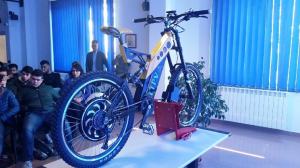 “La “Mountain Bike”, funziona sia a pedalata assistita che come motorino, per cui percorrere insidiosi tratti in salita non sarà un problema effettivo. Il retrotreno è a sistema a quadrilatero deformabile, mentre la Staffa è realizzata in base alle esigenze di chi ne usufruisce. Il Display comprende 5 livelli di assistenza ed è completo di configuratore di velocità” hanno spiegato i docenti.