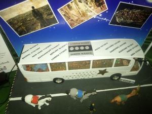 “Il pullman, fermo al centro della strada, in avaria, con le frecce accese, è l’immagine della società odierna, ridotta allo sbando da uomini vinti dall’avidità di potere e denaro. Molti non riconoscono più i valori del rispetto e della dignità. E sono segnali molto pericolosi per tutti noi”.