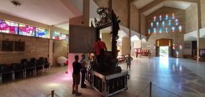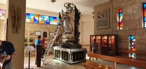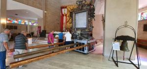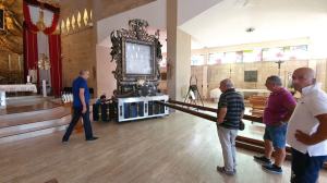 L’imponente macchina a spalla che ospita il quadro della Madonna della Consolazione è stata di nuovo messa in attività da portatori e fedeli. Nella mattina di oggi sono state montate le stanghe che, durante la processione, poggeranno sulle spalle dei portatori.