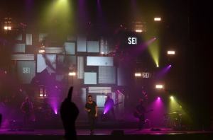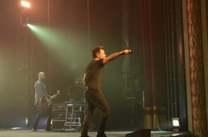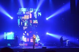 “Ogni tanto credo sia doveroso riorganizzare – commenta Nek – la propria vita artistica. Il 2015 è uno tra i più begli anni che la mia mente possa ricordare, mi riferisco al Sanremo di quest’anno, passando per un libro, fino ad arrivare a questo tour, che è come rinascere, sbocciare, rifiorire dopo un momento di silenzio, ed è come essere a casa, perché questo palco è questa casa per me. Questo 2015 esiste perché c’è un passato che io rispetto, che voglio condividere con voi, perché il concerto di stasera è come un viaggio, e adesso il viaggio inizia con questi pezzi qui”.  Suona così “in te” in una versione diversa da quella che una ragazzina come me cantava a squarciagola nell’anno ‘93, lasciandosi emozionare dalla tematica.  E poi continua con “angeli nel ghetto”, “cuori in tempesta”, “se una regola c’è”, la nuovissima “prima di parlare”, e “contromano”, il cui video è stato girato a Genova. A contornare la scena del meraviglioso Teatro Comunale Francesco Cilea, ci sono i fari e le illuminazioni molto dinamiche che creano sfondi e cornici molto particolari. Ad ogni canzone si rappresenta sullo schermo e sotto forma di luci in movimento l’argomento della canzone, in rosso, blu, giallo e variopinto con l’alternarsi anche di forme geometriche, per rappresentare il concept visual.