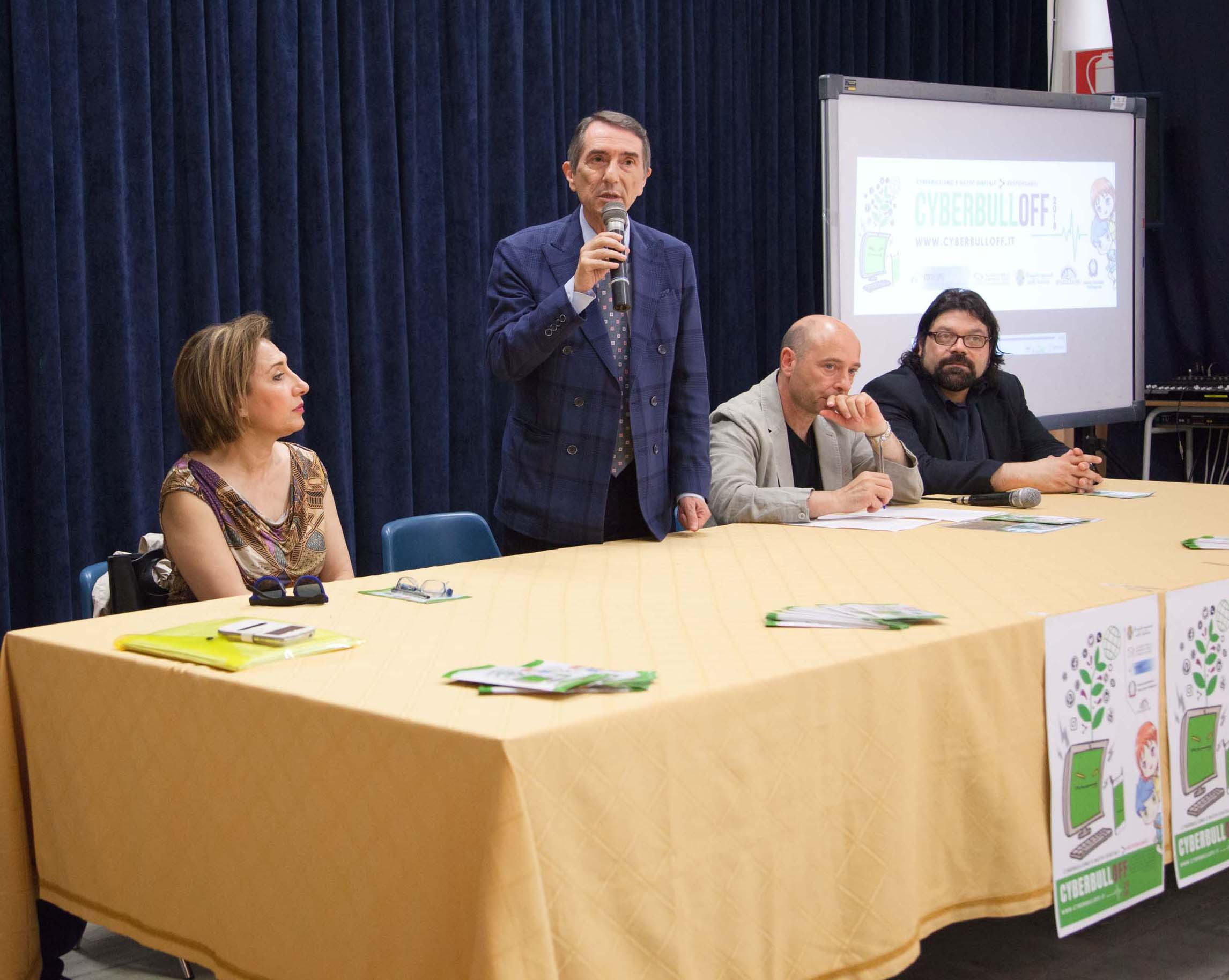 L’esperienza coi docenti, i genitori, ma soprattutto coi ragazzi è stata sintetizzata dagli altri esperti coinvolti. Antonio Aprile, giornalista ed esperto webmedia, rivolgendosi al pubblico più giovane ha aggiunto: «Abbiamo voluto interagire con voi, capire le esigenze e le problematiche che si manifestano nell’uso degli strumenti e andare incontro a tutte le richieste. Abbiamo passato tante ore nelle classi e tanti momenti fondamentali, perché anche noi impariamo tante cose dalle vostre domande. Il senso di questa esperienza è il tentativo di vincere la paura: paura delle cose che ci troviamo ad affrontare, dell’uso di strumenti che sono molto complessi anche per gli adulti. È importante sviluppare il senso di responsabilità in tutto quello che facciamo sulla rete, non solo nel non incorrere in comportamenti che sono penalmente perseguibili, ma ancora di più nel non ferire la sensibilità di nessuno». Per l’aspetto psicologico conclude la psicoterapeuta Valentina Arcidiaco: «Con i ragazzi si è parlato dell’accesso alle emozioni, di come e perché nasce il fenomeno; delle vittime. Abbiamo fatto delle attività laboratoriali sulla scia di quelle fatte dal teatro: dalla percezione di cosa succede al cyberbullo, ma anche alla vittima.