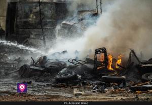 Non è la prima volta che gli abitanti si trovano di fronte ad uno ‘spettacolo‘ simile. Questo pomeriggio del fumo nero ha coperto il quartiere della zona sud per poi propagarsi fino al centro città. L’odore lasciava presagire qualcosa di grave e, infatti all’interno dell’area adiacente il Campo Coni vi sono macchine e furgoni incendiati.