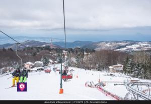 Una bellissima giornata a Gambarie d’Aspromonte con tanta neve e moltissimi sciatori attivi sulle piste.
