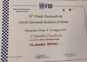 Entusiasta la responsabile della specialità di Dama prof.ssa Giovanna Lofaro, che li ha preparati durante l’anno scolastico in collaborazione con l’esperto sig. Giuseppe Amaretti.