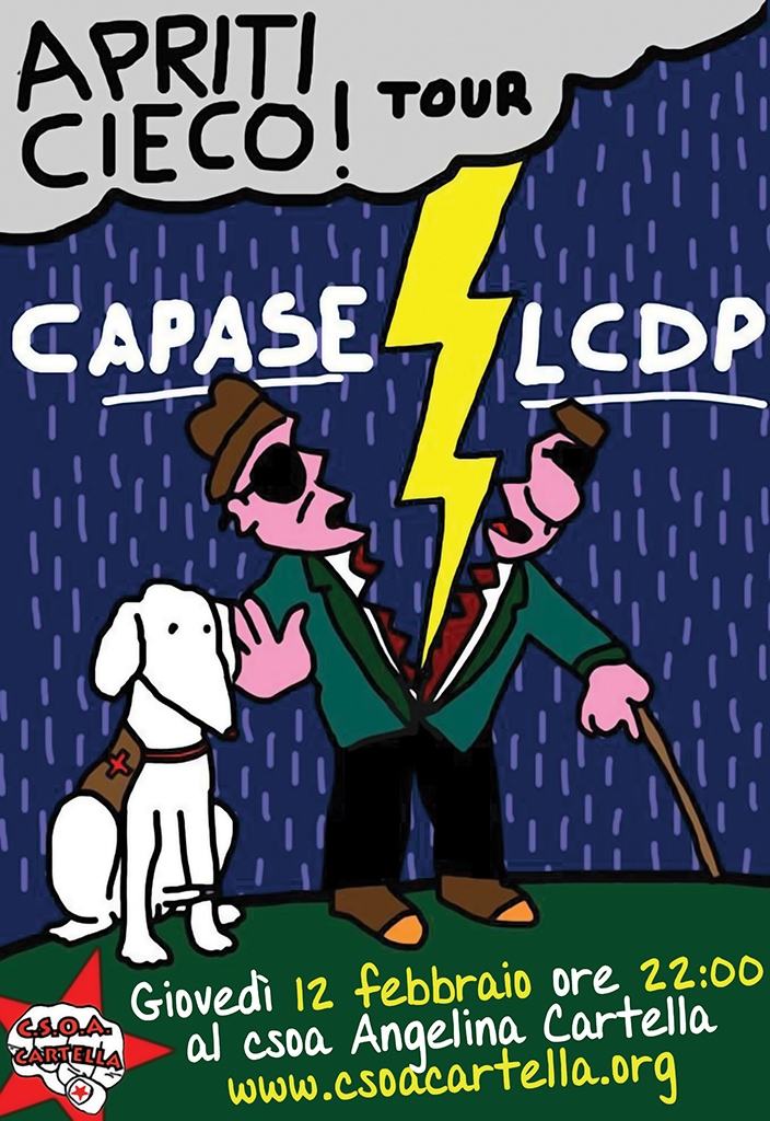 I CAPase sono un “duo free brutal spiritual” di Taranto e sono conosciuti nei circuiti underground italiani come una delle band più interessanti emerse di recente. I due musicisti alternano inquietanti set di elettronica ambient a stridenti duelli di chitarra distorta e batteria, sognanti arpeggi conditi da eterei campioni acustici a rif ossessivi e violenti.