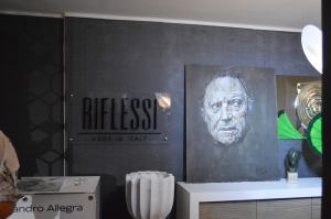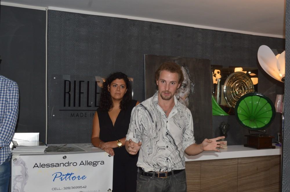 <<Anche il design è una forma d’arte – sottolinea Eleonora Azzarà, proprietaria dello store Riflessi – coniugare l’arte di Alessandro con gli elementi di design, come un mobile o un complemento d’arredo, è un connubio che non è per niente forzato. Una cosa chiama l’altra, infatti come si può vedere nella mostra abbiamo coniugato questi elementi. Gli ambienti, attraverso i colori, le ombre e le luci, sono in perfetta armonia. La luce, la forma e l’arte, in questo caso, creano quello che, anche nell’occhio di chi guarda, è esattamente una forma d’arte. In questo caso non solo il quadro ma anche tutto l’ambiente nel suo complesso>>.
