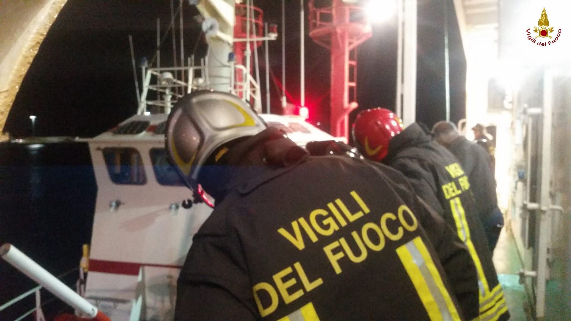 “Oggi alle ore 16:00 circa è giunta alla sala operativa dei Vigili del Fuoco una richiesta d’intervento per un incendio a bordo di una nave traghetto che da Tremestieri (ME) stava navigando verso Reggio Calabria. Dalla sala operativa venivano inviate al porto di Reggio Calabria delle squadre attrezzate per intervenire a bordo della nave oltre all’imbarcazione del nucleo sommozzatori. I passeggeri della nave sono stati soccorsi in mare da motovedette della Capitaneria di Porto di Reggio Calabria e da una imbarcazione dei Vigili del Fuoco del Comando di Messina. In seguito il traghetto è stato rimorchiato presso il porto di Reggio Calabria, dove i Vigili del Fuoco sono saliti a bordo per verificare le condizioni dello scafo. Fatti scendere i mezzi pesanti presenti a bordo del traghetto, i Vigili con l’ausilio di una termocamera hanno verificato le temperature presenti nelle strutture dello scafo e al momento opportuno hanno fatto accesso alla sala macchine, dove con l’ausilio dell’impianto idrico della