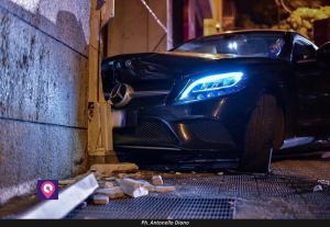 Una Mercedes Nera C200D con a bordo due persone è andata a sbattere contro l’edificio dell‘INPS sito alle spalle di Piazza de Nava.