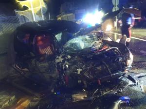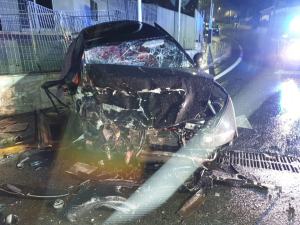 Come mostrano le immagini l’auto è stata completamente distrutta dall’impatto.