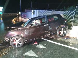 Reggio, incidente sulla SS 106: auto va a sbattere contro un muro – FOTO