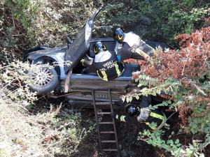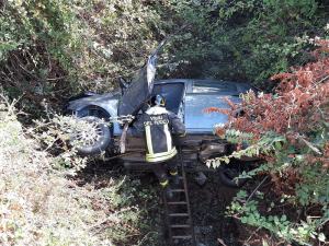Auto si ribalta e finisce in una scarpata. Uomo trasferito d’urgenza al GOM – FOTO
