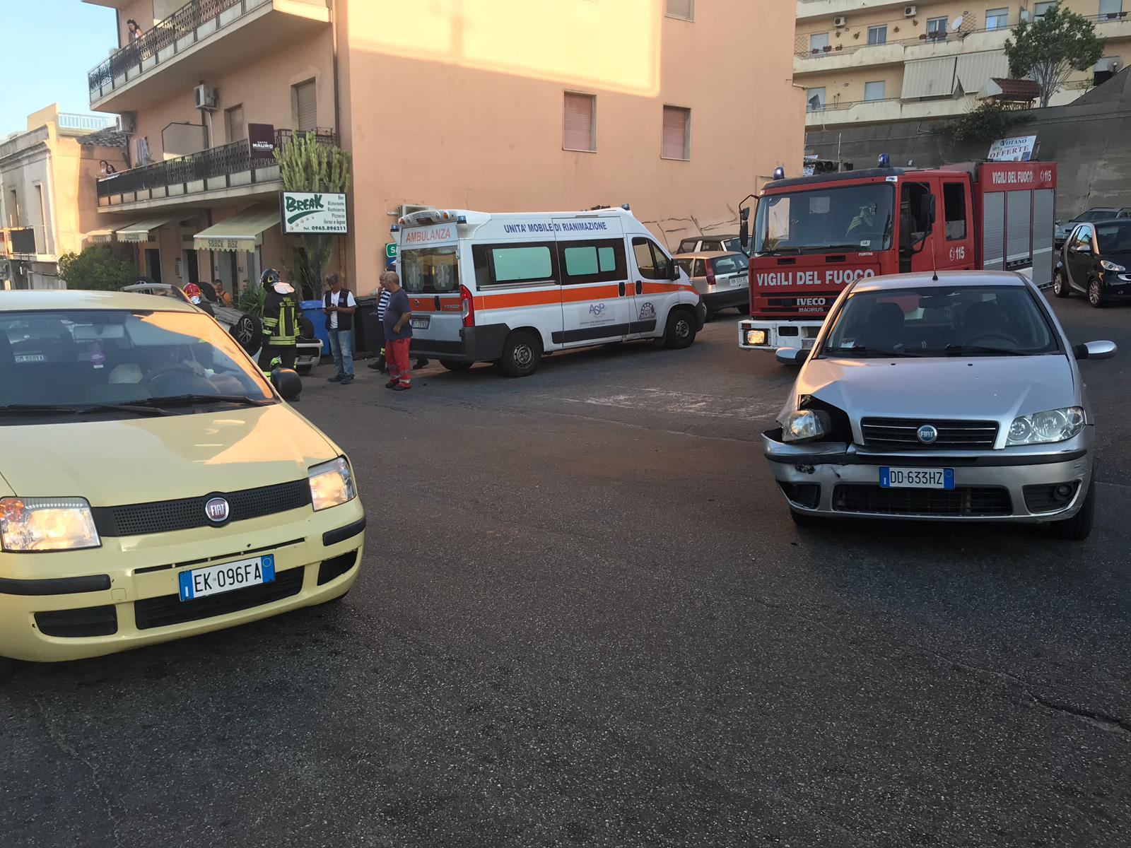 Incidente stradale a Reggio Calabria, un’auto si ribalta – FOTO