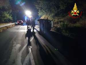 Per cause in corso di accertamento una Toyota Yaris, nell’affrontare una curva, si ribaltava su un fianco. Il conducente rimaneva illeso.