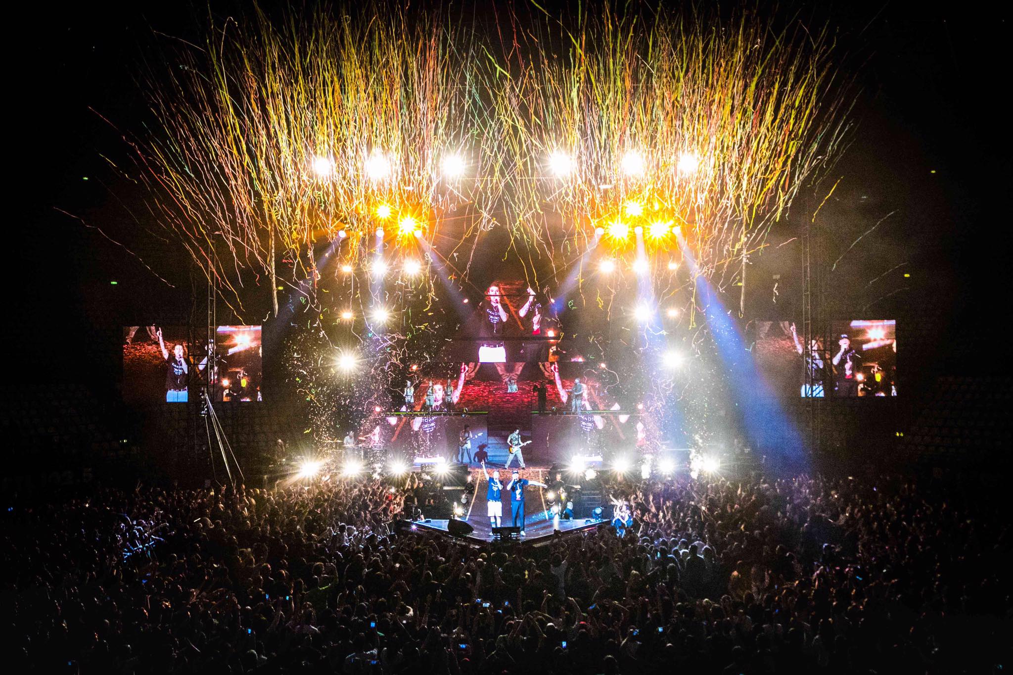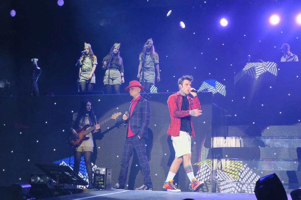 Una grande festa di musica, con un J-Ax vero animale da palcoscenico e uno scatenato Fedez che impugna la chitarra e si lancia persino sul pubblico all’interno di una enorme palla trasparente, rotolando sugli spettatori in lungo e in largo.