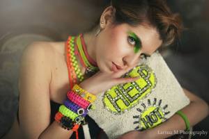 Orecchini pendenti, goielli luminosi e brillanti, collane ricche di pietre, bracciali di tessuto dai colori sgargianti e fluo, particolarissime borse fatte di materiali moderni e impreziosite da pietre colorate: questa la collection di Anna Foti, che le tre modelle, Francesca Mauceri, Maria Chiara Naim e Giovanna Modaffari, mostrano in uno shooting d’impatto ed elegante, catturato dall’obiettivo attento di Larissa Mollace.