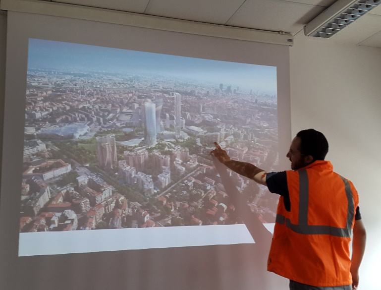 In una prima fase sono stati illustrati i dettagli del progetto con particolare attenzione alla gestione del cantiere, ai lavori di realizzazione della torre Isozaki (acquistata da Allianz come nuova sede), alla realizzazione dei parcheggi sotterranei, alla Torre Hadid (nuova sede di Generali) con la sua forma particolare, ed agli scavi per le fondazioni della torre Libeskid. Successivamente, caschetti antiinfortunistica in testa, la delegazione con la guida dell’arch. Pietro Catalano si è recata in cantiere per un sopralluogo e per approfondimenti tecnici. Il momento più emozionante è stato vissuto sicuramente all’interno della torre Isozaki che con i suoi 202 metri di altezza rappresenta l’edificio più alto d’Italia, grazie alla vista mozzafiato offerta dal 24 esimo piano.