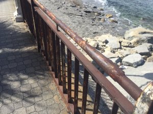 Ecco cosa accoglie il visitatore a Lazzaro: un Lungomare in condizioni pietose (e impietose), con ringhiere arrugginite, lampioni divelti, arbusti abbandonati a loro stessi e non potati da anni, marciapiedi con “buche” pericolosissime per grandi e piccini, manutenzione completamente assente. Per non parlare delle scale per accedere al mare, in alcuni tratti (zona c.d. “Castelluccia”) ormai franate del tutto assieme alla passeggiata del Lungomare stesso.