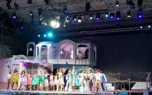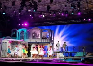 Sano divertimento e romanticismo per le 1200 persone presenti a Catona Teatro ad assistere al musical scritto dall’inglese drammaturga Catherine Johnson in una nuovissima versione tutta italiana. Cast stellare e scenografia incredibile che lascia tutti a bocca aperta, con un pontile sospeso su vera acqua di mare, pedane girevoli e bouganvillea tipici dell’isola del Mediterraneo.