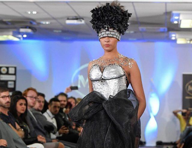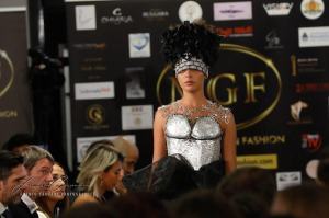 Entriamo ora nel vivo dell’evento con la prima uscita della serata: la stilista argentina: Fabiana Alaniz. Le creazioni in metallo e materiale riciclabile riproducono una vera e propria “ opera d’arte” sul corpo della donna.