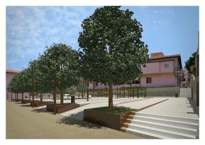 Il piano prevede la riqualificazione architettonica e tecnico-funzionale dell’area, ovvero la sistemazione della strada e dei marciapiedi per agevolare la realizzazione di uno spazio attrezzato ad uso collettivo per proiezioni, spettacoli e manifestazioni e la posa di piante di bergamotto.