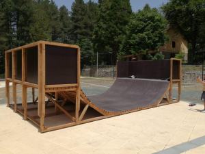 Nella giornata di ieri è stato ultimato il montaggio della “mini per skateboard” per esterno in legno con telaio portante in travetti di abete - FOTO