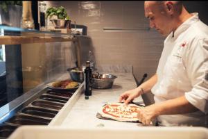 “Abbiamo deciso di cambiare completamente colori e luci. Ho creato una stanza a vista che utilizzerò solo per gli impasti, oltre alle solite cucine. Abbiamo aggiunto un secondo forno per alzare la qualità del servizio. Durante i fine settimana ho messo a dura prova tutti i miei clienti, facevano file enormi e lunghe attese sia per sedersi che per ricevere le pizze a tavola. Ho preso anche un appartamento di fianco per ampliare i locali e le sedute, con una 40ina di posti in più”.