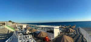 - spiaggia con ombrelloni e lettini distanziati secondo le norme del DPCM.