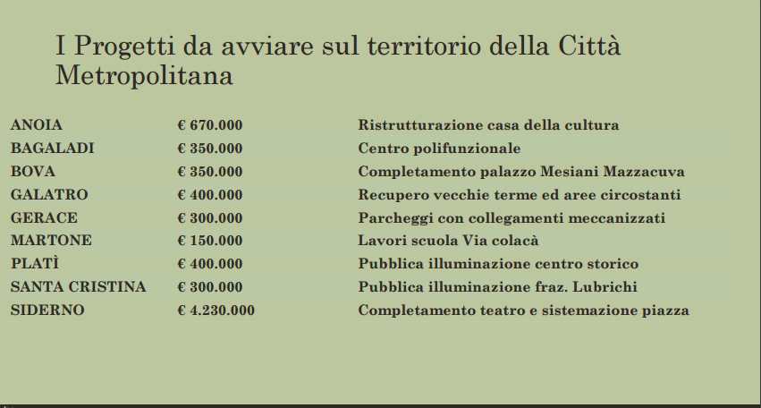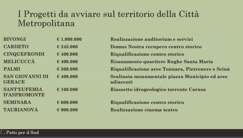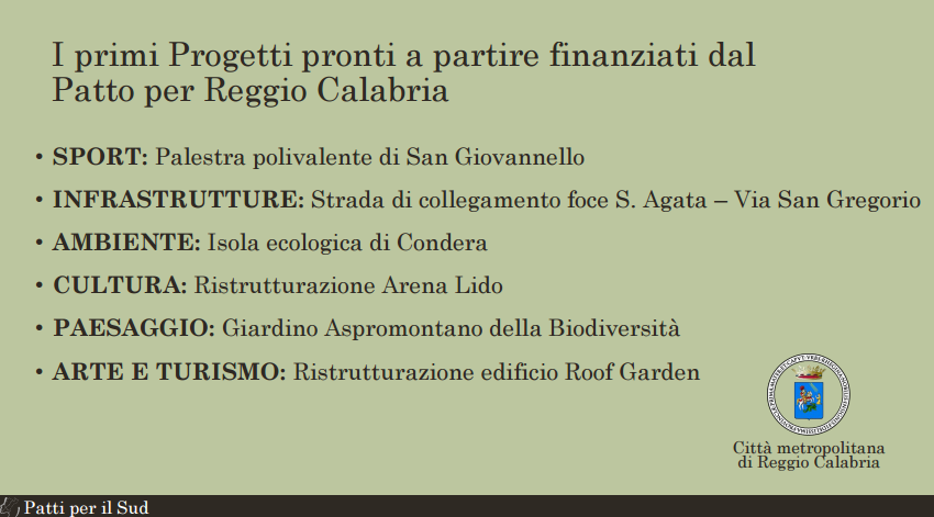 Nella conferenza stampa di oggi sono state rese note le prime opere pubbliche finanziate dai Patti per il Sud.