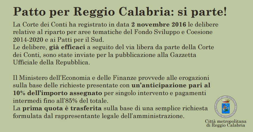 Ecco i primi interventi previsti dai finanziamenti dei “Patti per il Sud”