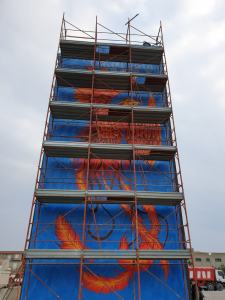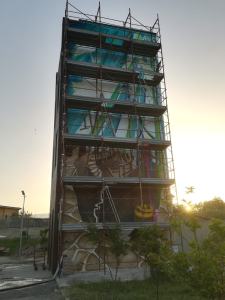 “Siamo soddisfatti del risultato finale, non era semplice disegnare su torri ale 16 metri. La difficoltà principale era proprio misurarsi con queste proporzioni, nessuno di noi aveva disegnato sugli edifici. E’ stata una grande sfida, credo di poter dire che l’abbiamo vinta”, dichiara Ilenia senza nascondere l’orgoglio.