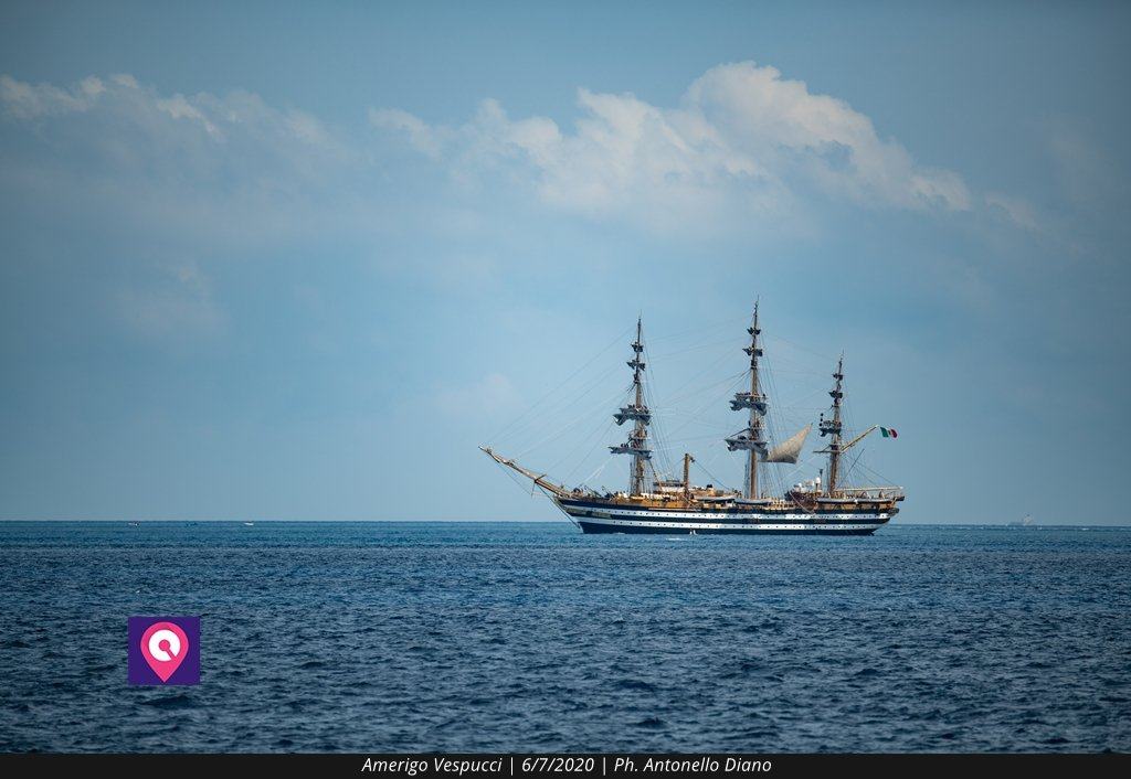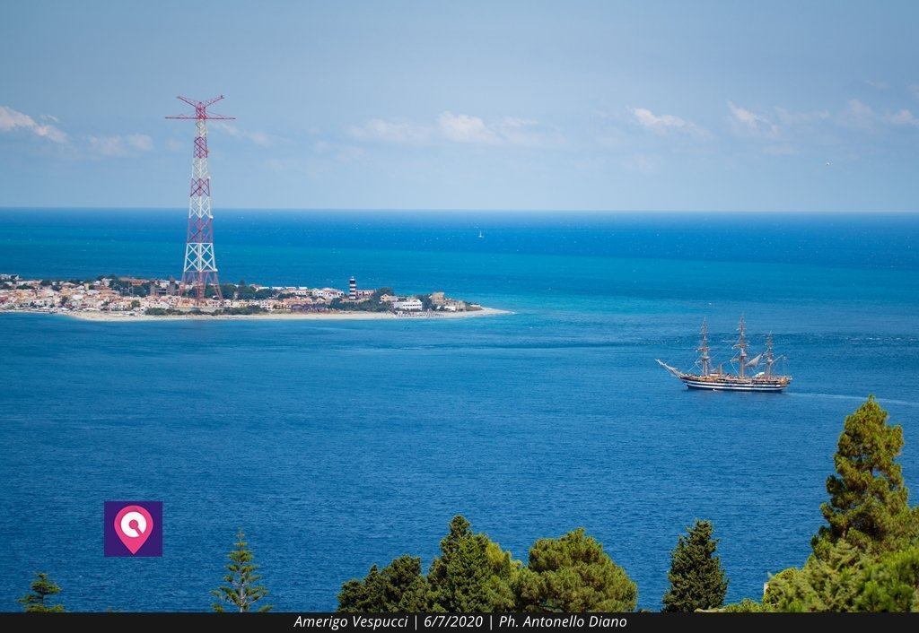 La ‘più bella nave del mondo’ incanta lo Stretto: il passaggio dell’Amerigo Vespucci – FOTO