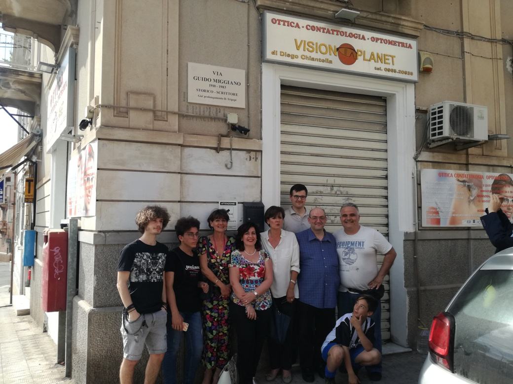 Si è svolta questo pomeriggio, la cerimonia di intitolazione di una strada della città alla figura dello storico e scrittore Guido Miggiano e la scopertura delle relative targhe toponomastiche. Alla cerimonia sono intervenuti numerosi, i figli e i nipoti del prof. Miggiano, amici ed estimatori della nota figura di giornalista ed ex amministratore reggino, dal 1945 al 1970 riordinatore della Biblioteca comunale.