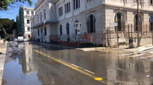 In Via Miraglia (strada parallela al Lungomare Falcomatà), di fronte l’edificio centrale delle Poste Italiane, si è verificata la rottura di un tubo sottostante al manto stradale che ha causato un’ingente perdita d’acqua. Il flusso transita in Via Vitrioli, prima di arrestarsi in Via Marina alta, dove si è formato un abbondante accumulo.