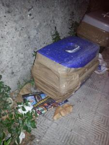 Da quanto si apprende, sparsi per la città ci sarebbero altri trasportini abbandonati - FOTO