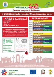 Si avvisa la cittadinanza che sono stati pubblicati i calendari di raccolta differenziata porta a porta, per il mese di febbraio 2020, per le utenze domestiche del territorio comunale.