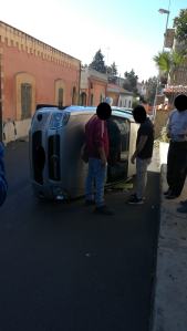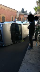 Reggio, rocambolesco incidente ad Arangea: auto si ribalta